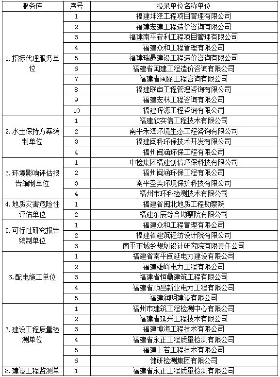 南平綠發集團有限公司2023年服務庫招錄結果的公示