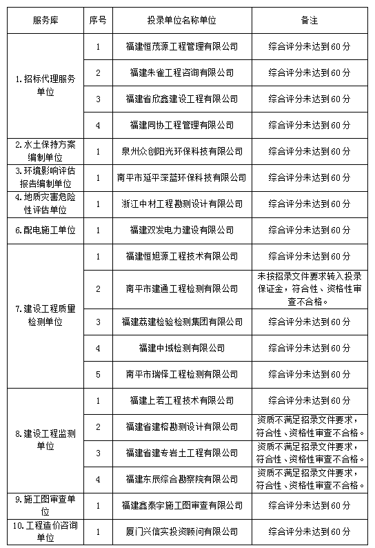 南平綠發集團有限公司2023年服務庫招錄于202372608:30時在福建暉源工程咨詢有限公司評審,經評審委員會對投錄文件進行評審,現將結果公示如下: