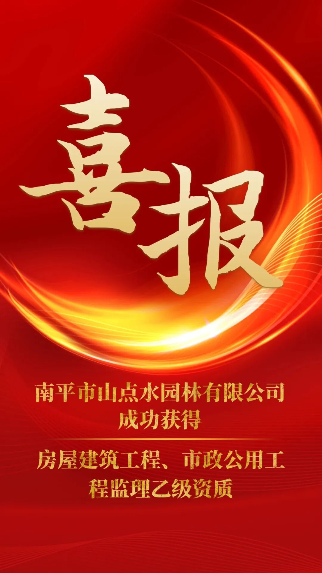 喜報:南平市山點水園林有限公司獲得房屋建筑工程、市政公用工程監理乙級資質