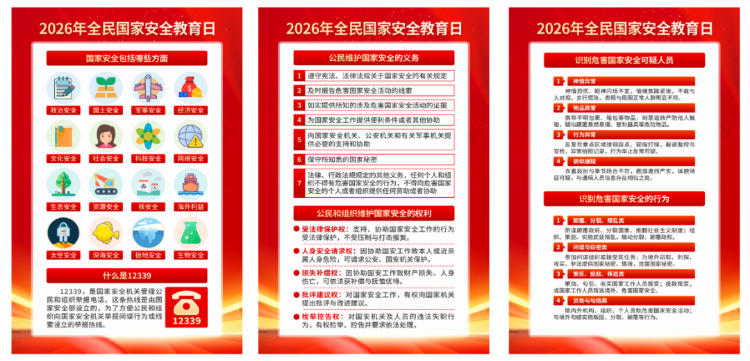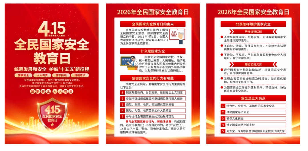 2015年7月1日,第十二屆全國人民代表大會常務委員會第十五次會議通過《中華人民共和國國家安全法》,該法自公布之日起施行。其中第十四條規(guī)定,每年4月15日為全民國家安全教育日。 2026年是國家安全法頒布施行11周年,4月15日將迎來第十一個國家安全教育日,主題是“統(tǒng)籌發(fā)展和安全,護航‘十五五’新征程”。旨在深入貫徹落實總體國家安全觀,進一步增強全民國家安全意識,推動國家安全事業(yè)不斷向前發(fā)展。下面我們一起學習相關知識吧! 什么是國家安全? 2015年7月1日施行的《中華人民共和國國家安全法》明確指出:國家安全是指國家政權、主權、統(tǒng)一和領土完整、人民福祉、經(jīng)濟社會可持續(xù)發(fā)展和國家其他重大利益相對處于沒有危險和不受內(nèi)外威脅的狀態(tài),以及保障持續(xù)安全狀態(tài)的能力。